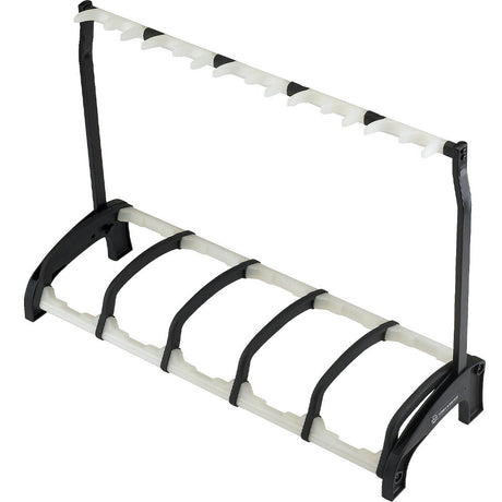 Gitarrställ för flera gitarrer löser behovet när du har mer än ett instrument. Multistativ med plats för 3, 5, 7 eller till och med 9 gitarrer är vanligt, och i sortimentet hos SoundStoreXL finns modeller som rymmer flera elgitarrer, akustiska gitarrer och basar samtidigt. De har ofta justerbara hållare med gummistoppning och skumbelagda kroppsstöd, och kan fällas ihop för transport till replokal eller scen.