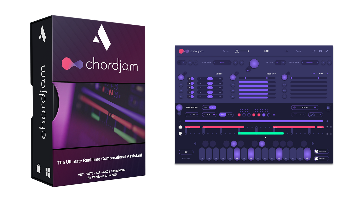 Chordjam är en innovativ plugin och fristående applikation som bygger ackord och progressionsmönster genom intuitiv användarguidad randomisering.