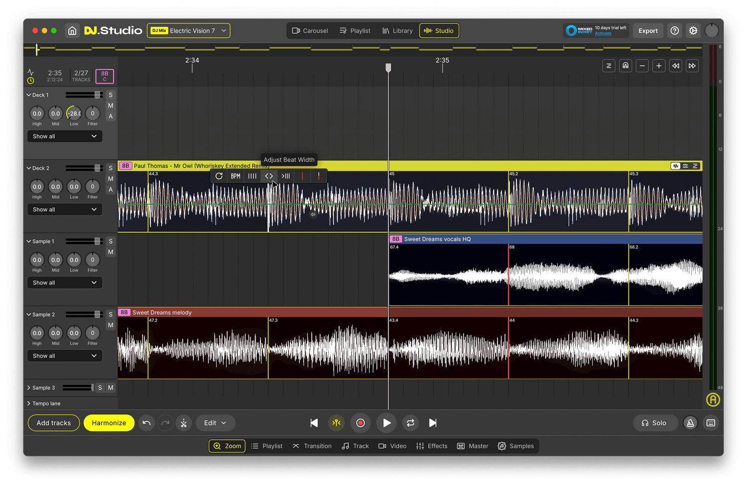 - Den omdesignade beatgrid-editorn möjliggör precisa individuella beatjusteringar, stabilisering av tempo och övergripande gridkontroll.