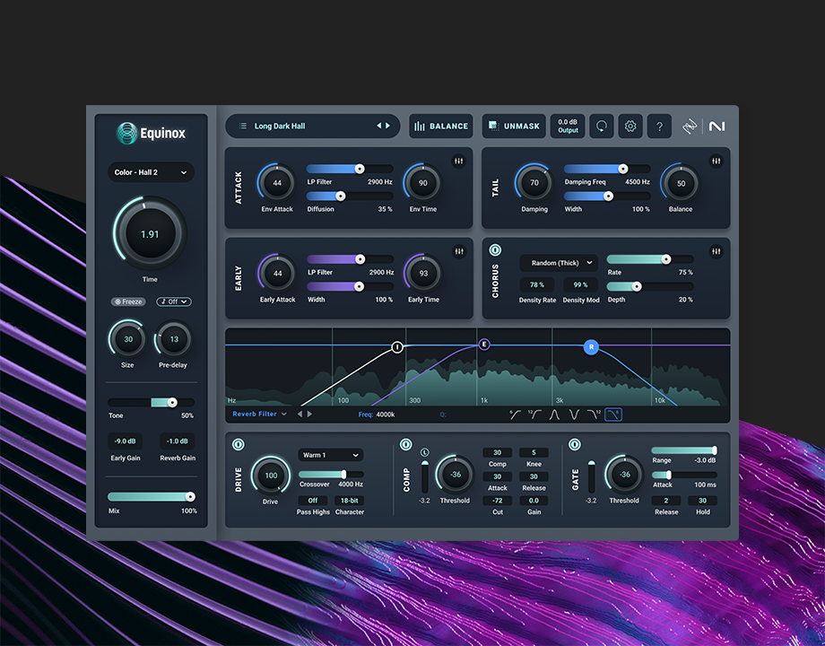 En branschledande lösning för immersiv och surround reverb, Equinox kombinerar legendariska Exponential Audio-algoritmer med iZotope’s adaptiva unmasking-teknik för att hålla dina mixar kristallklara.
