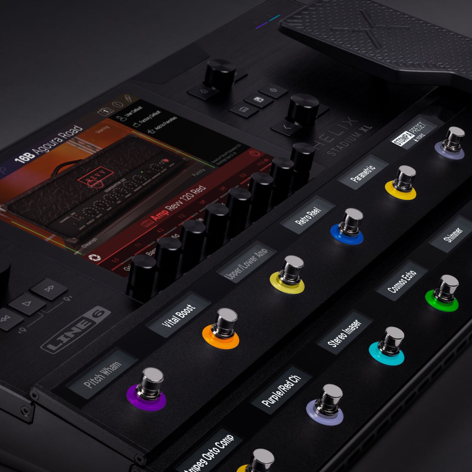 Den nye Helix® Stadium XL Floor er flagskibet i Stadium-serien og fungerer som en komplet performance-workstation til guitarister og producere. Ved at kombinere kraftfuld DSP, den helt nye Agoura™ amp-modeling teknologi, og en intuitiv brugerflade med 8" touch-skærm, leverer den både realistisk forstærkersimulering og fleksible lydskabende muligheder.