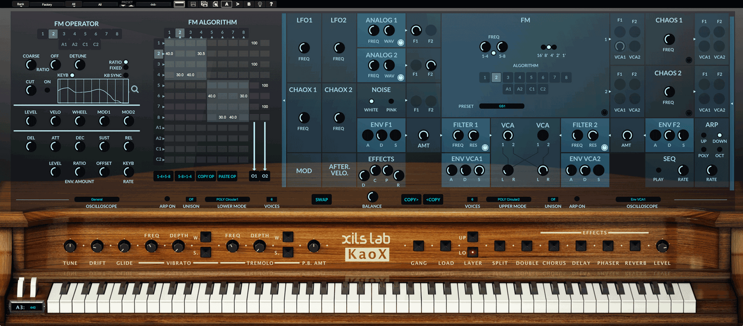 Med 8 operatörer, 2 utgångar, 2 bankar med oberoende tonhöjd och förbättrade FM-algoritmer har XILS-lab höjt FM-syntesen till en ny nivå.