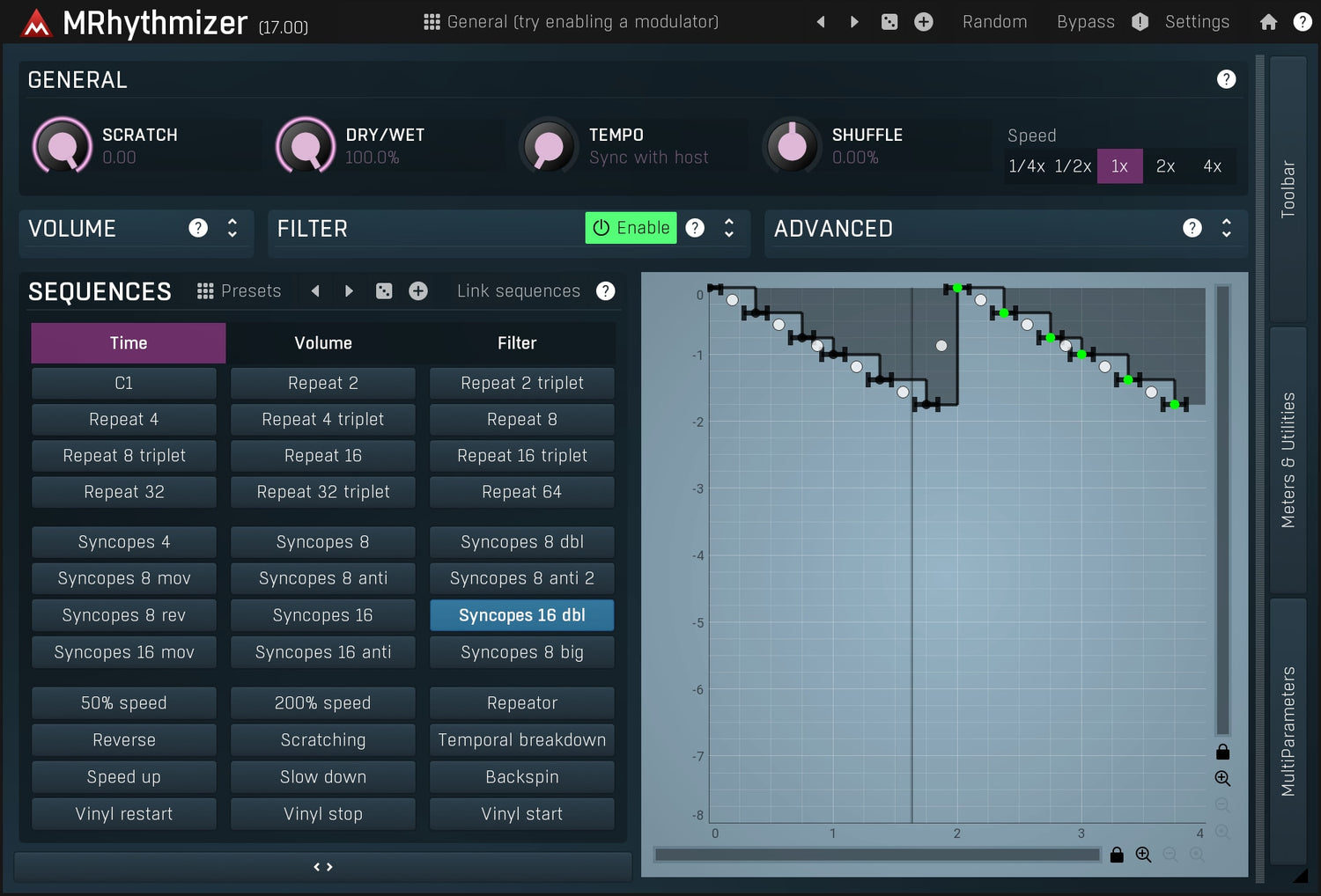 Vi känner alla till scratches, men med MRhythmizer kan du enkelt scratcha med en enkel slider, eller så kan du använda modulatorer och pluginet kommer att göra det automatiskt!