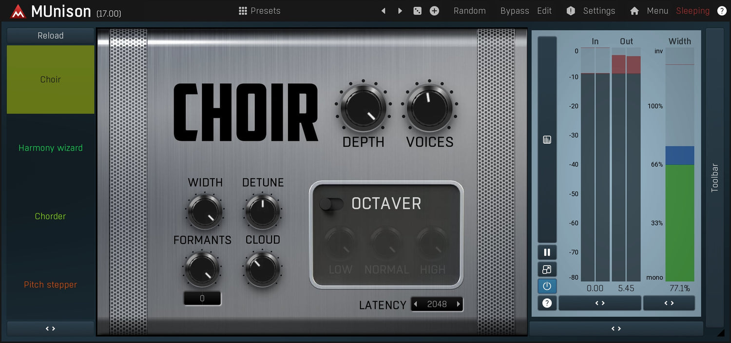 MUnison tar din audio, analyserar den, upptäcker dess tonhöjd om det behövs och genererar andra röster. Dessa kan spela på samma tonhöjd som originalet och bara fluktuera runt den för att ge den realistiska unison-effekten. Eller så kan de spela harmonier, följa den skala du väljer, användbart även för liveframträdanden faktiskt. Eller så kan de låta väldigt olika, skapa en hel orkester av människor som sjunger/spelar med vad du vill.