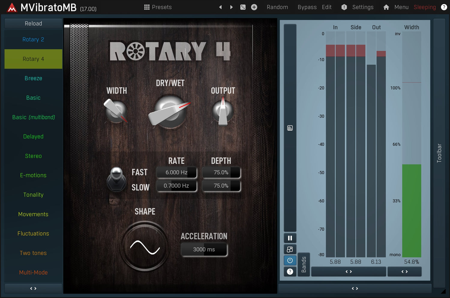 Vibrato-effekter används sällan, men denna är annorlunda. MVibratoMB är också en kraftfull rotary-simulator, som är perfekt för allt från orglar till gitarrer. Och ljudkvaliteten är helt enkelt den bästa på marknaden.