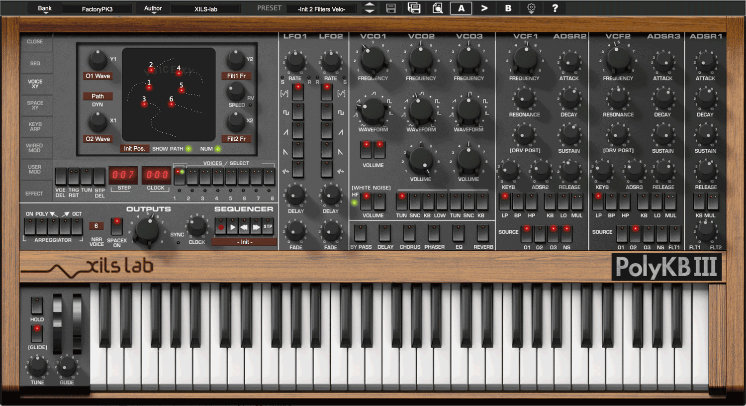 Dessutom får du två underbara, krämiga multimode-filter som självresonerar i alla lägen, samt Xils exklusiva '0df' teknik. Det finns också tre analoga modellerade envelopes, med tidsmultiplikation och fantastiska loopmöjligheter. Två komplexa LFO:er finns tillgängliga med MIDI-synkroniseringsmöjligheter. Allt arbetar för att leverera ett fylligt, varmt och omedelbart inspirerande analogt ljud.