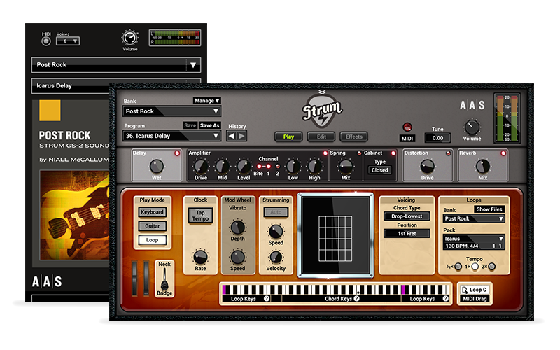 Post Rock innehåller 12 stilar, 84 presets och 84 strumming patterns. Samlingen drar nytta av en rikedom av distinkta alternativa rockgenrer, från den rymdiga hypnotismen i den underground post rock-scenen till de rivna jeansen från 90-talets grunge, till de chuggande och överdrivna riffs från chartstormande brittiska alt-rockband. Post Rock lägger också till nyanser av brännande high-gain drone metal och post hardcore riffs för att ge det en extra dimension.