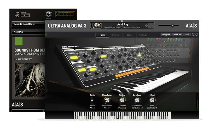 Inspirerad av sitt arbete inom en mängd olika genrer under de senaste 12 åren, är Deadbeats Sounds from BLKRTZ en samling av 100 presets för Ultra Analog VA-1 som verkligen pressar instrumentet till sina jordskakande låga och skimrande höga extremiteter.