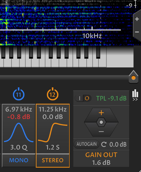- 12 sections with 5 freely assignable parametric filter types; bell, low shelf, high shelf, low cut, and high cut