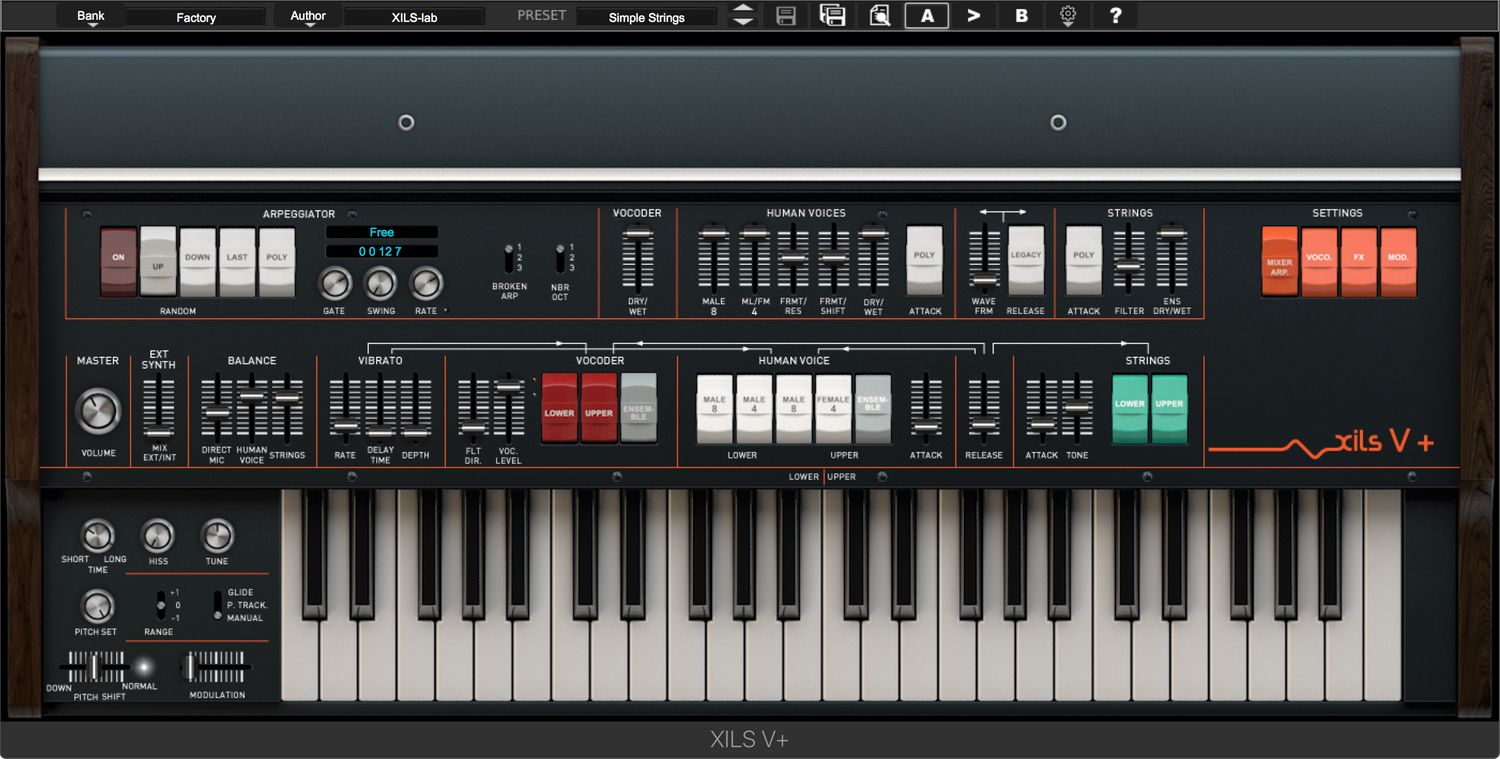 XILS V+ erbjuder en Vintage 10-band Vocoder, Supreme Top Octave Divider-baserade strängar och en Octave Divider baserad på mänskliga röster, och erbjuder sofistikerad lagerhantering av alla dessa tre element.