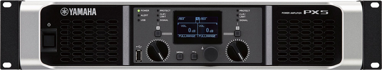 Yamaha PX5 är en professionell 2-kanals effektförstärkare, utformad för ljudtekniker, DJ:s och installatörer som behöver hög effekt, exakt DSP-bearbetning och driftsäker funktion i ett kompakt rackformat. Med en uteffekt på upp till 2 × 800 W vid 4 Ω levererar PX5 gott om kraft för att driva både PA-högtalare och monitorer, oavsett om du jobbar med mindre klubbar, medelstora event eller fasta installationer.