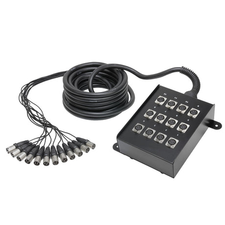 Stageboxen är vanligtvis utrustad med 16 och 32 XLR-hon kontakter. Alla mikrofoner och musikinstrument är anslutna till stageboxen och multikabeln kopplar boxen till mixern.