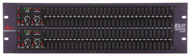 Med ett EQ-arv som har producerat otaliga industristandardpatent och går tillbaka mer än 30 år, lever dbx iEQ-31 enkelt upp till dbx -arvet av kompromisslös ljudintegritet. Förutom oöverträffade utjämningsspecifikationer, erbjuder iEQ-31 också de inbyggda nödvändigheterna som inkluderar AFS-feedbacksdämpning, Type V-brusreducering och PeakStopPlus®-begränsning. Förutom att inkludera två 31-bandskanaler med 1/3-oktav-utjämning, erbjuder iEQ-31 även +12 dB ingångsförstärkningsområde; omkopplingsbar +6 eller +15 dB boost /cut-område, 40 mm faders, XLR, 1/4'' och Euroblock ingångar och utgångar, icke-ledande nylonreglage; och ett intuitivt interface med omfattande utdata och förstärkningsminskningsmätning. Som alltid är det oundvikliga resultatet av vår noggranna uppmärksamhet på detaljer och högkvalitativa komponenter exceptionellt ljud, prestanda och tillförlitlighet.