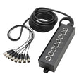 - Åtta-kanals underkärna med permanent ansluten tio meter lång kabel som avslutas i åtta Adam Hall XLR-kontakter.