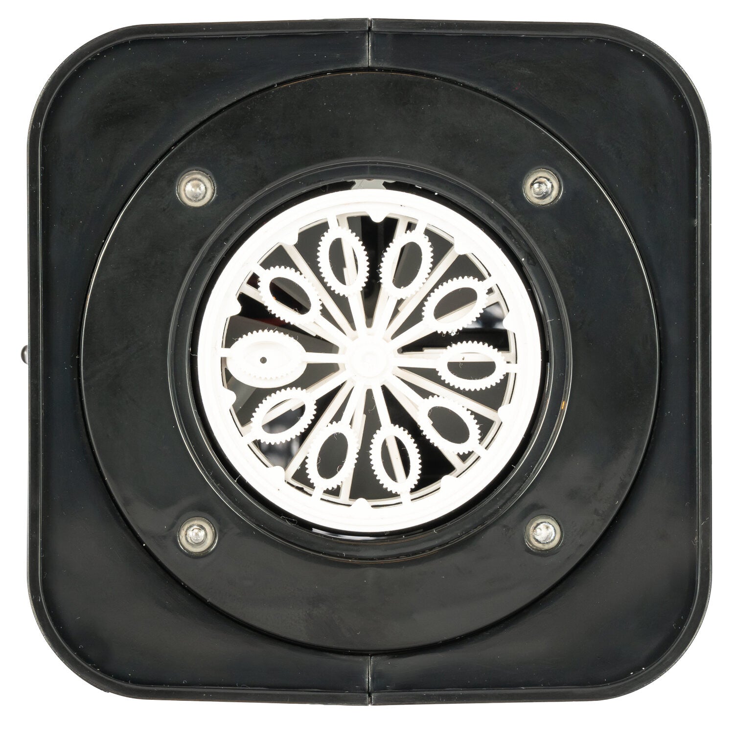 Kompakt såpbubbelmaskin som skapar en imponerande ström av såpbubblor som svävar genom luften, upplyst av 4 LED-lampor för att förstärka bubblornas färger.