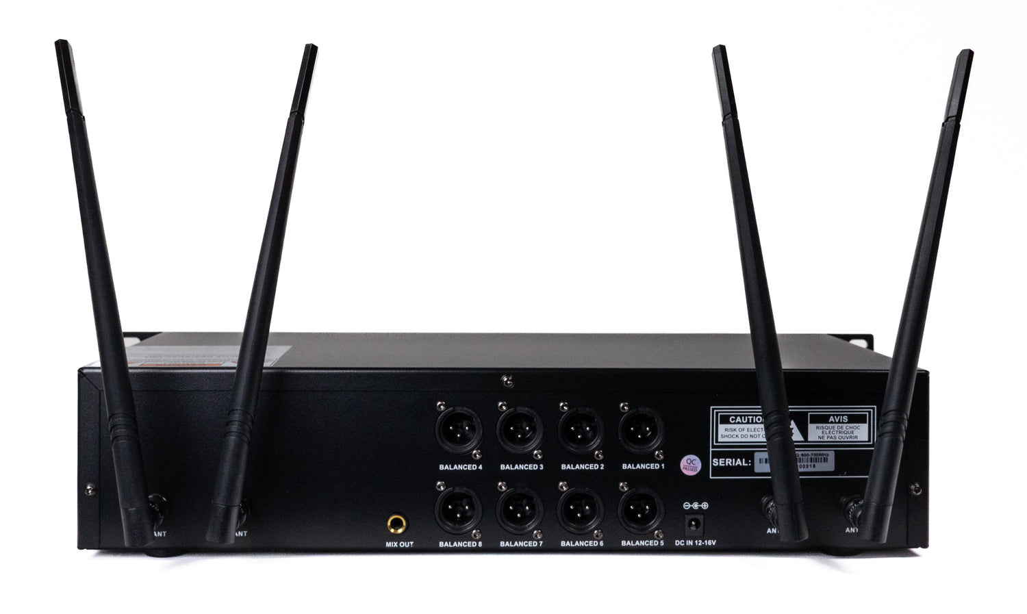 - Handhållet trådlöst mikrofonsystem med 8 mikrofoner