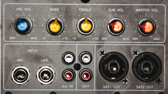 - Separata volymjusteringar för subwoofer och satellit.