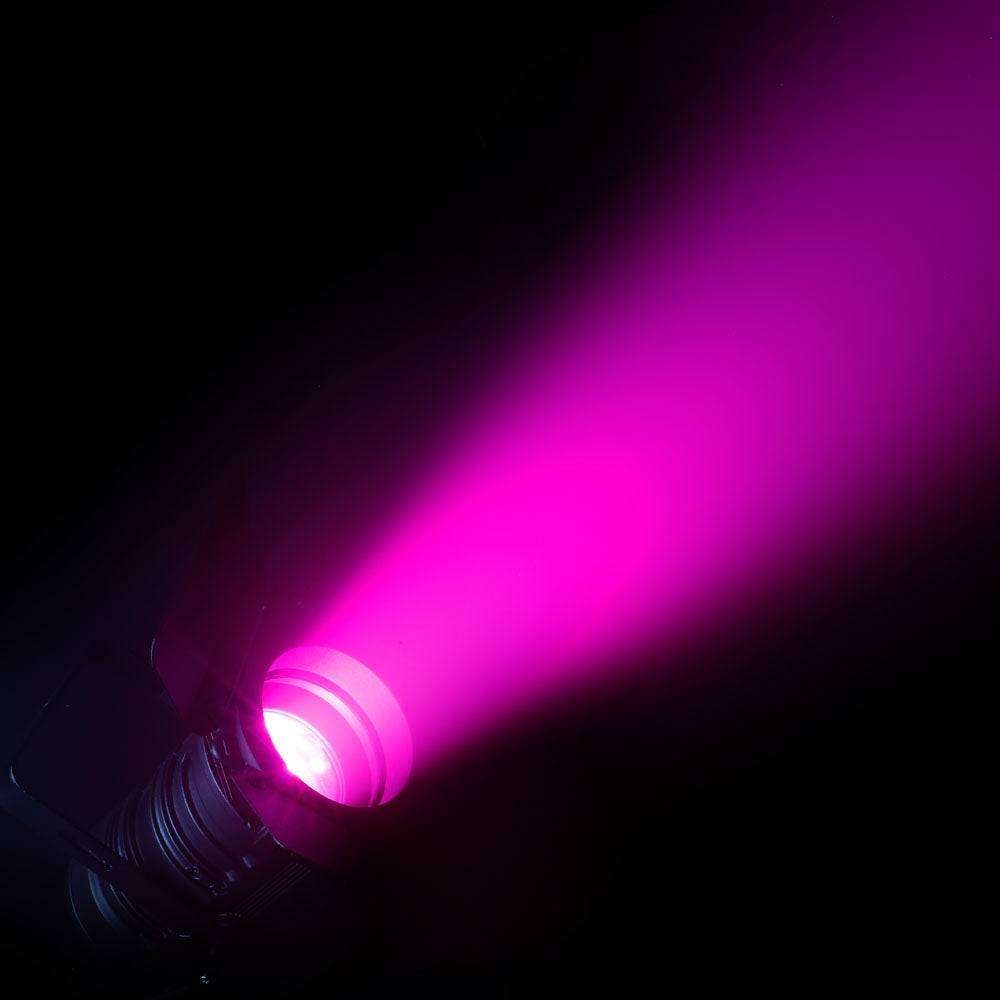 Cameo TS 60 W RGBW WH är en mångsidig biospot med ett plankonvext objektiv och manuell zoom för fokusering från punkt till översvämning. Spotten levererar en mjuk stråle med en konstant variabel 9° till 41° vinkel. RDM-stativet är utrustat med en enda 60 Watt RGBW LED för en kraftfull belysningsstyrka på 19 800 lux kl. 1 meters avstånd.