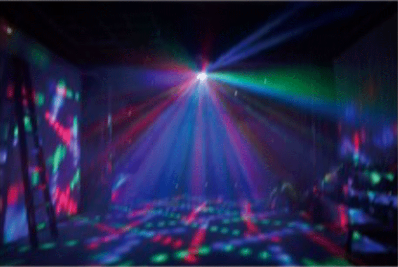 • LED-effekt som fyller rummet med ljusstrålar.