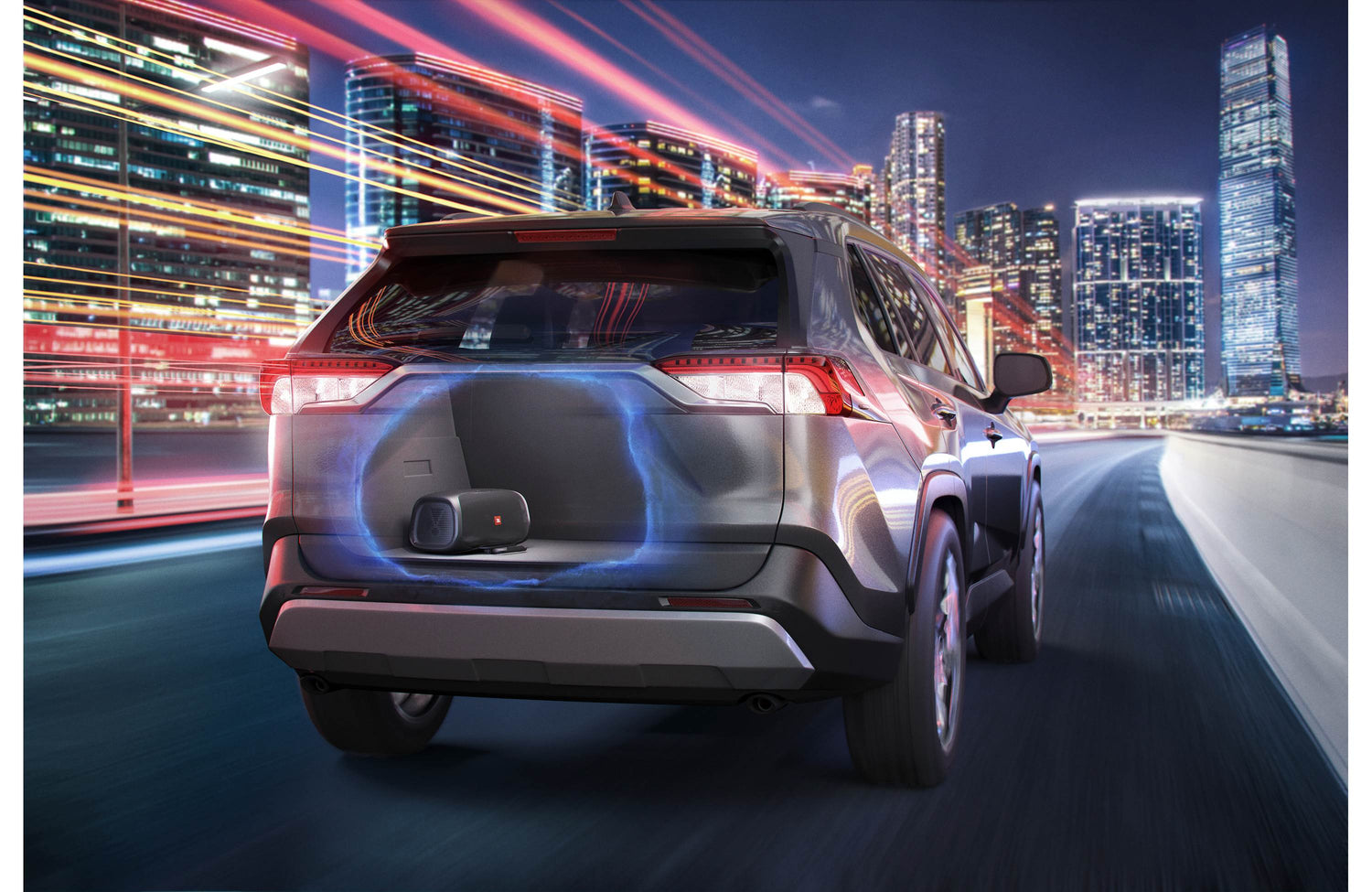 JBL BASS PRO GO är en avtagbar subwoofer som kan kopplas bort från bilen och användas som en trådlös Bluetooth-högtalare.