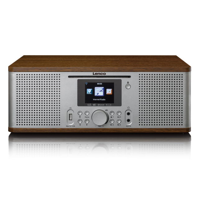 Lyssna på dina favoritradiostationer med Lencos DIR-270 radio - här i snygg trä- och silverdesign.