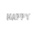 Folieballonger i silver som stavar "Happy". Skäggballonger för barnfödelsedag eller annan tillställning