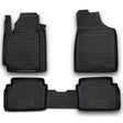 Den upphöjda kanten gör att mattan håller smuts och smuts och skyddar bilens originalmatta, samt är lätt att rengöra. Om bilen har originallås kommer det att finnas fixeringshål i mattan som ser till att mattorna hålls på plats i bilen.