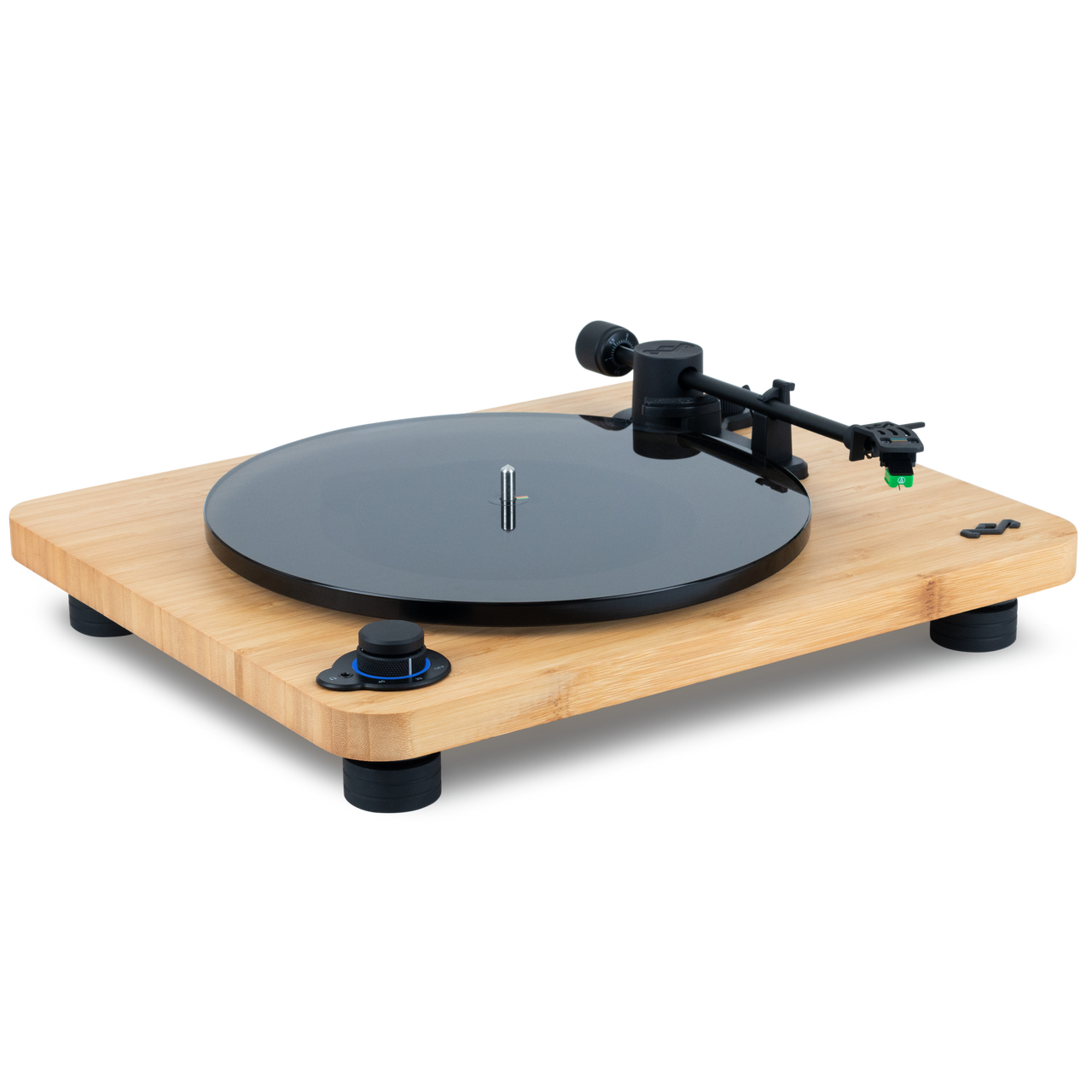 Marley Stir It Up är en trådlös skivspelare med en snygg, elegant design gjord av massiv bambu, REGRIND-silikon, REWIND-tyg, återvunnen plast och återvinningsbart aluminium.
