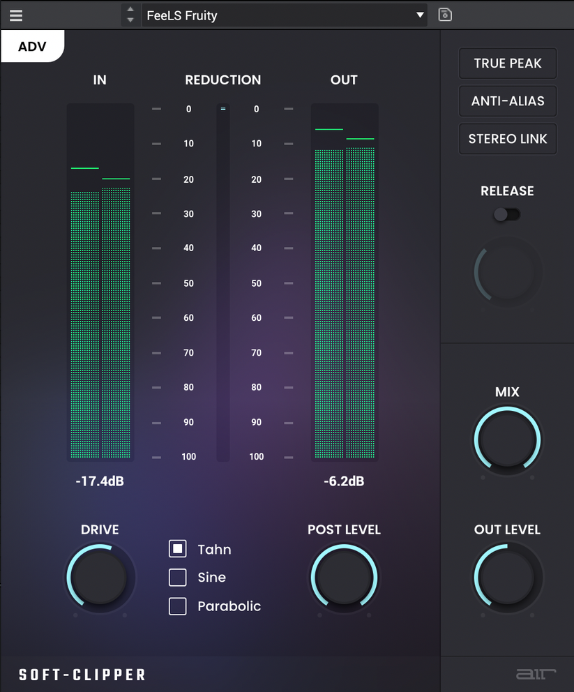 AIR Soft Clipper är inte bara en annan klon. Inspirerad av originalet, omarbetad och optimerad för att ge beatmakare och musikproducenter allt de behöver för att få den ultimata energin från mixen. AIR Soft Clipper, ett verktyg designat för dem som gör R&B, Rap, Drum and Bass, eller edgy Pop — du nämner det. Soft Clipper ger dina låtar det höga, men ändå rena, ljudet som är redo för release.