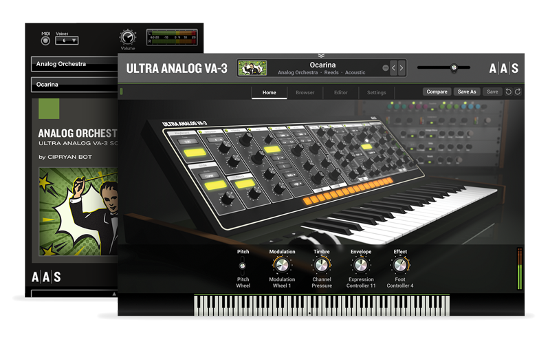 För sitt första ljudpaket med AAS tog Cipryan Bot sig an den formidabla utmaningen att återskapa instrumenten från den klassiska orkestern med vår analoga synthesizer. Resultatet är Analog Orchestra, en fascinerande samling av uttrycksfulla och överraskande naturligt klingande klanger som spänner över de olika instrumentfamiljerna, inklusive stråkar, träblås, brass, slagverk, pianon och mer.