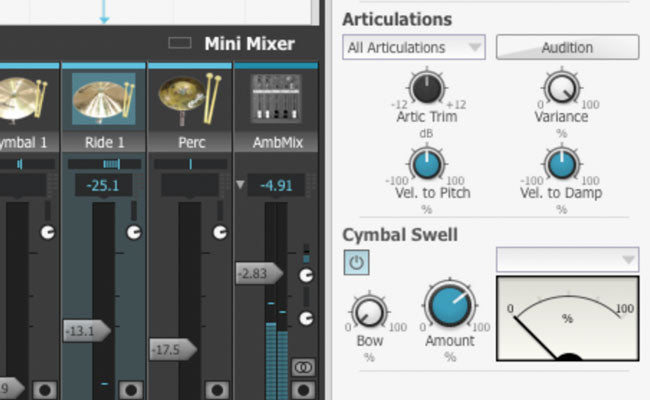 BFD3.5 är designad för att låta fantastiskt samtidigt som den erbjuder så mycket djup som du behöver. Bläddra igenom hela förinställningar, snabbt sammanställ anpassade kit eller forma vilket trumljud du önskar genom att omstämma, dämpa och bearbeta flera mikrofoner med den kraftfulla interna mixningsmotorn.