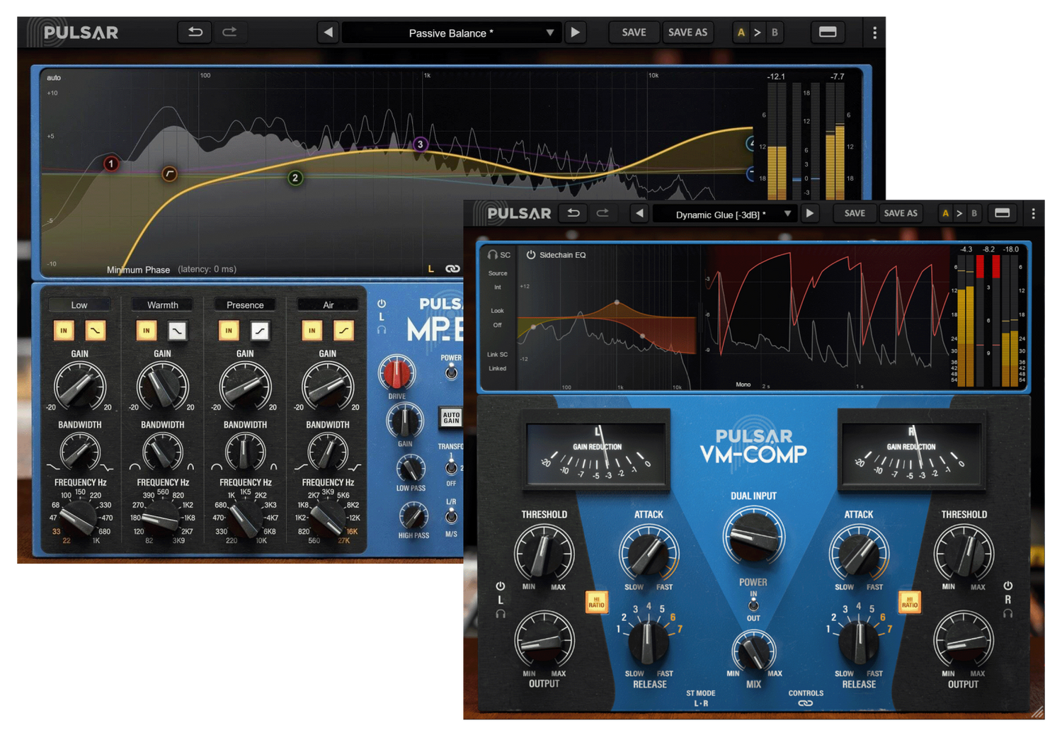 Detta paket kombinerar Pulsars uppdaterade passiva equalizer MP-EQ och variabel-mu kompressor VM-COMP till ett komplett verktyg för mastering och mix-buss. Tillsammans levererar de precis tonformning, transparent dynamisk kontroll och den analoga karaktären av de ursprungliga hårdvarudesignerna.