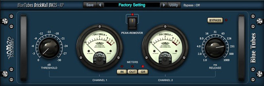 BT BrickWall BW2S-XP är en enkel och elegant brick wall-kompressor/limiter. Sätt bara in BT BrickWall BW2S-EX på din mono- eller stereobana, så får du en jämn ljudbana utan oönskade transients.