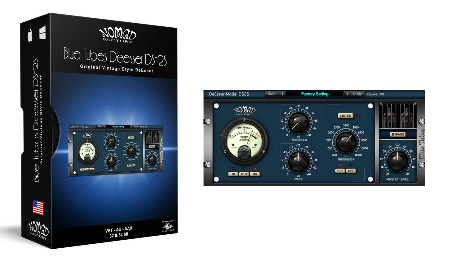 En de-esser fungerar som en frekvensspecifik kompressor. Faktum är att DS2S i grunden är en kompressor som drivs av hi-pass/band-pass filter. Den reducerar de störande höga frekvenserna när nivån av dessa frekvenser överstiger tröskeln. Tröskel- och frekvensreglage finns, liksom en lyssna-väljare för att höra endast de frekvenser som deessas. DS-2S är det perfekta sättet att ta bort den oönskade sizzlen från dina vokalspår.