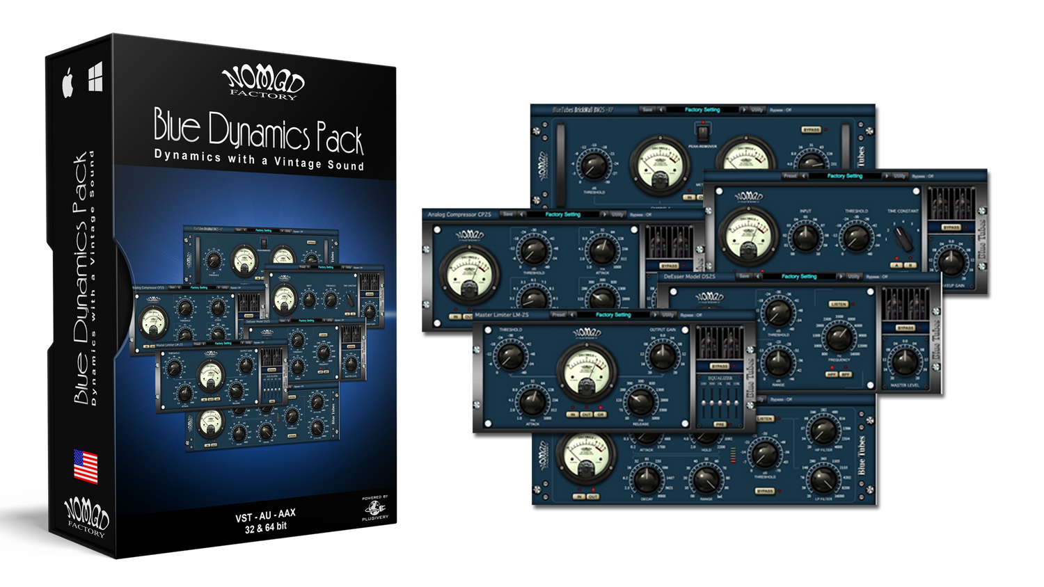 Detta paket återskapar de varma ljudkvaliteterna från klassisk dynamisk analog hårdvara. Ljudkvaliteten i Blue Dynamics pack är inget mindre än fantastisk. Alla 6 plug-ins erbjuder ett enkelt och funktionellt vintage-stil gränssnitt, samt låg CPU-användning för blixtsnabb bearbetning.
