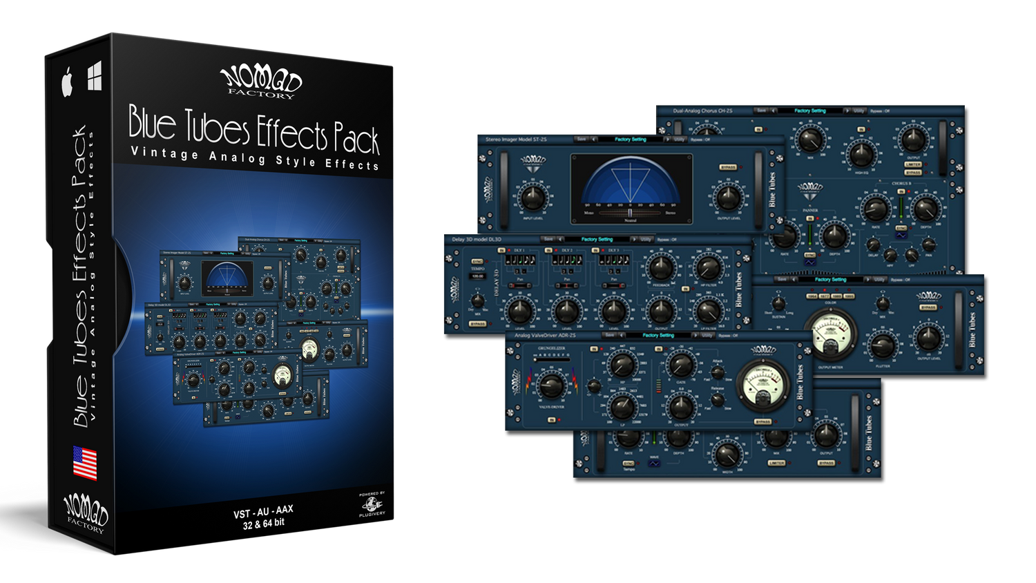 Blue Effects Pack är en samling av 6 plug-ins processorer som är designade för att förbättra kvaliteten på digitala ljudinspelningar. Detta paket återskapar de varma ljudkvaliteterna hos klassisk analog hårdvara.