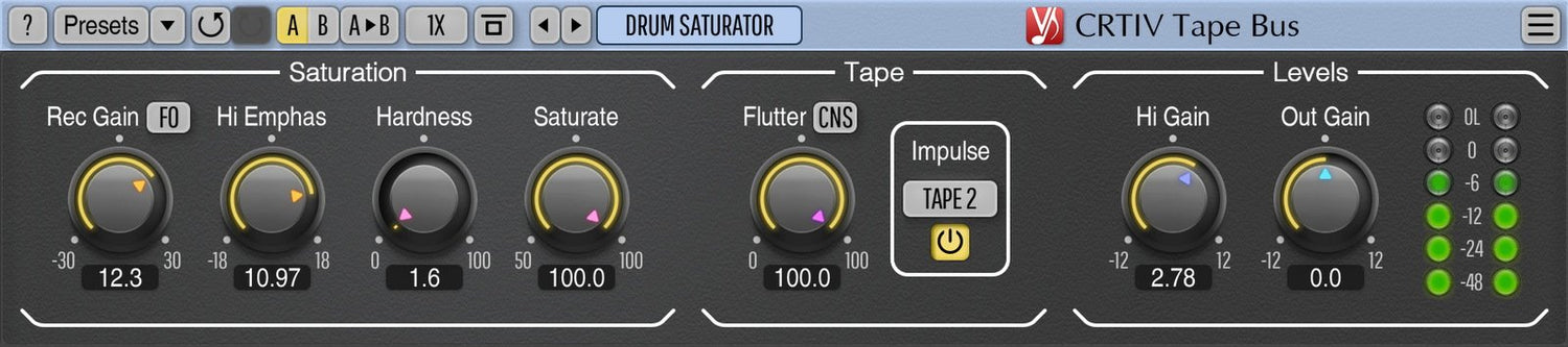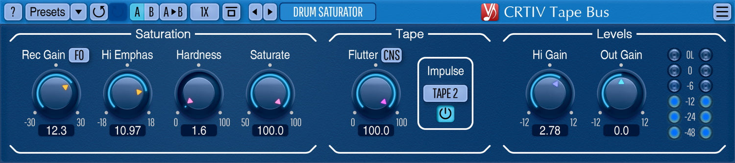 CRTIV Tape Bus plug-in för professionella musikproduktionsapplikationer återskapar karaktäristiska element av ljudet från bandspelare. Detta inkluderar saturation, modulation noise och smearing effects som är kända för den “analoga” känslan de ger till ljudinspelningar. Denna plug-in tillämpar också en vald impulsrespons som Voxengo har tagit från befintliga bandmaskiner.