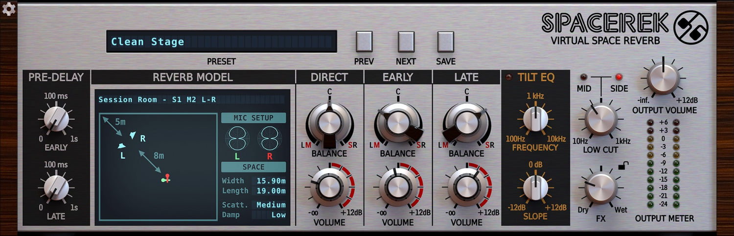 Spacerek gör det också enkelt att balansera det direkta signalet, tidiga reflektioner och sena reflektioner med sin trekanals mixer; medan de högmusikalisk Tilt EQ och Low Cut filtermodulerna ger en enkel formning av den övergripande svansen. Och eftersom varje Reverb-modell är förkonfigurerad för vänster-höger eller mid-side stereooperation, är det en barnlek att justera bredd och spatialisering.