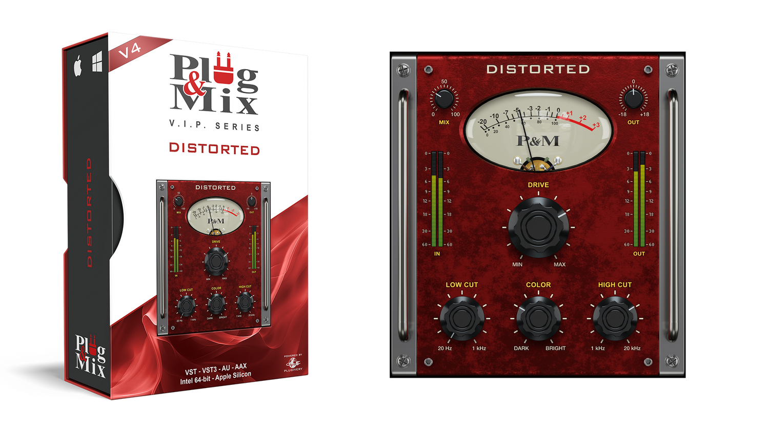 Lägg till kraftfull grit och crunch till din mix med Distorted, en mångsidig distortion plugin som ger intensitet till gitarrer, trummor eller till och med sång. Med Drive, Low Cut och Highs-kontroller låter Distorted dig forma ditt ljud med precision och lägga till precis rätt mängd kant.