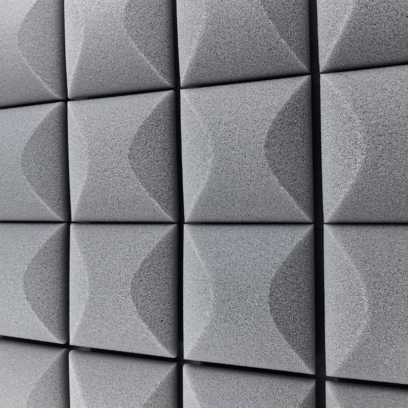 Panelerne er fremstillet i akustikskum med struktureret overflade, som hjælper med at absorbere lyd og skabe et mere kontrolleret lydmiljø. Det giver klarere tale, bedre optagelser og en mere behagelig lytteoplevelse. Den grå farve passer diskret ind i både moderne hjem og professionelle arbejdsrum.