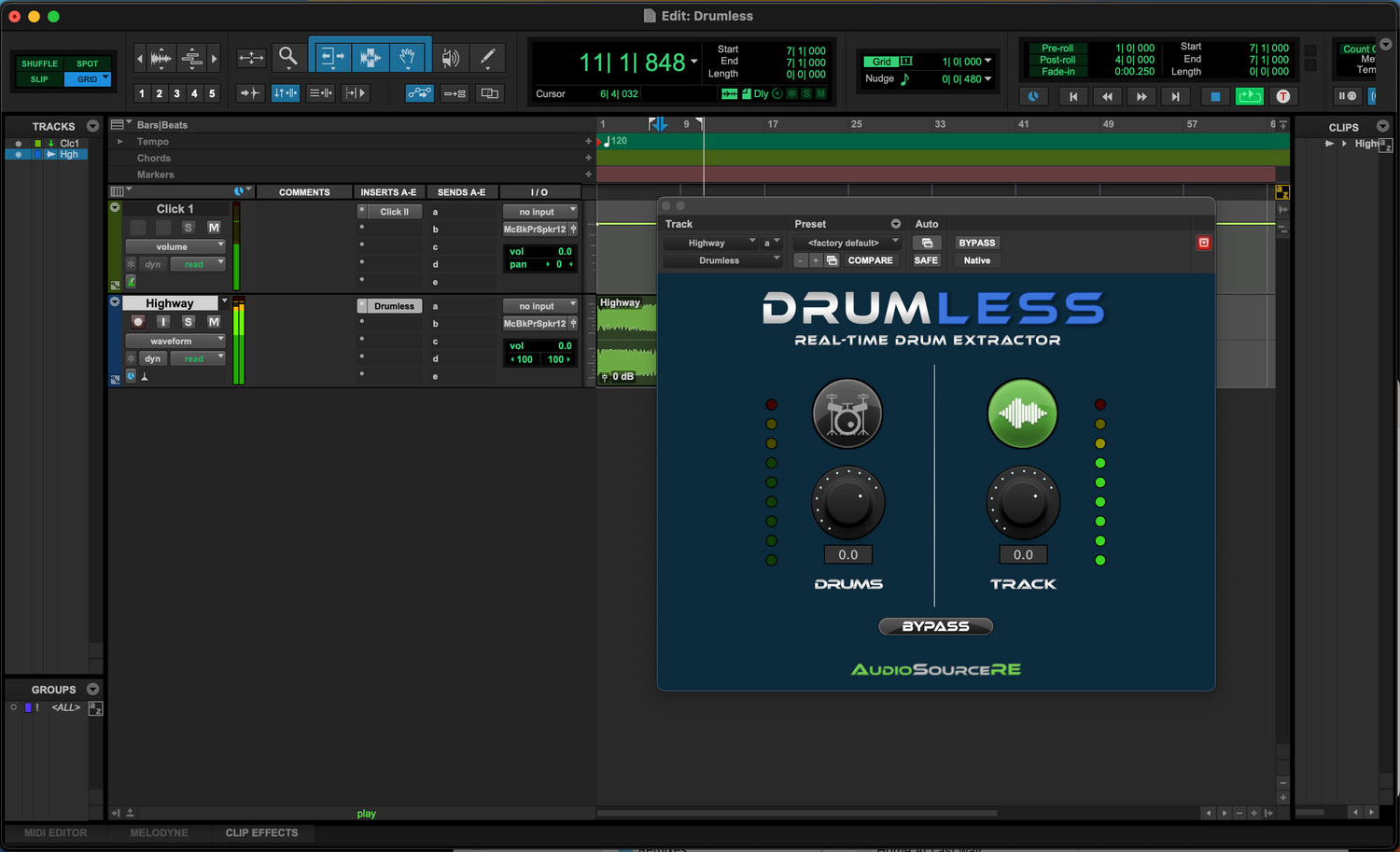 DRUMLESS låter dig ombalansera trum- och instrumentdelar, från små justeringar till helt soloade trummor.