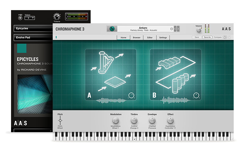 De 111 Epicycles presets utforskar äventyrligt gåtfulla och osäkra områden. Nio kategorier strukturerar serien av mönster och texturer: Soundscapes, Basses, Plucked Strings, Keys, Synths, Strings and Pads, Percussions, Arps, och Effects.