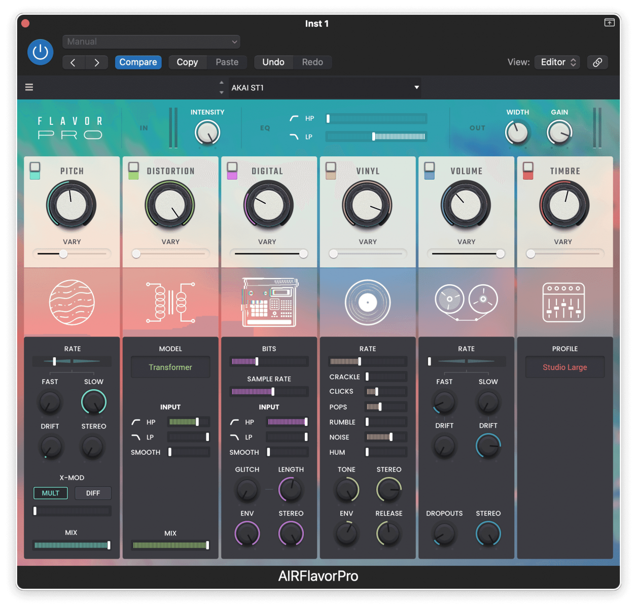 Vi presenterar Flavor Pro, AIR:s helt nya flaggskepp lo-fi multi-effektsplugin, designad för att manipulera samplingar, melodier, loopar och instrument till det yttersta för dagens moderna lo-fi-ljud. Flavor Pro förvandlar din effekterfarenhet till ett helt nytt framtids-/retrolandskap.