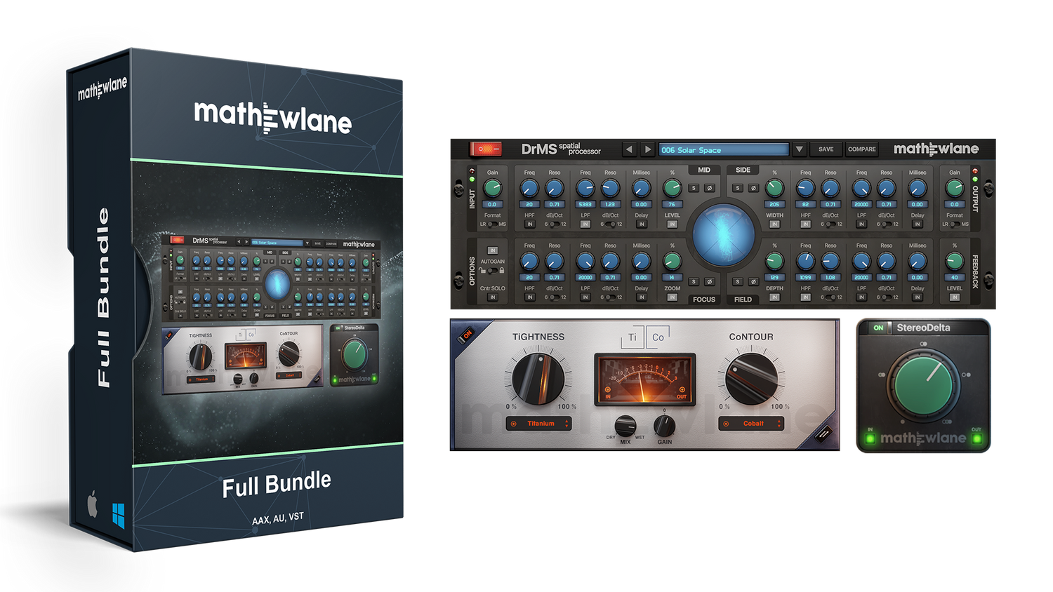 Mathew Lane Full Bundle kombinerar den välkända DrMS spatial processor med den analoga stilen TiCo compressor & character plug-in, samt den användarvänliga StereoDelta one-knob spatial processor – allt i ett köp!