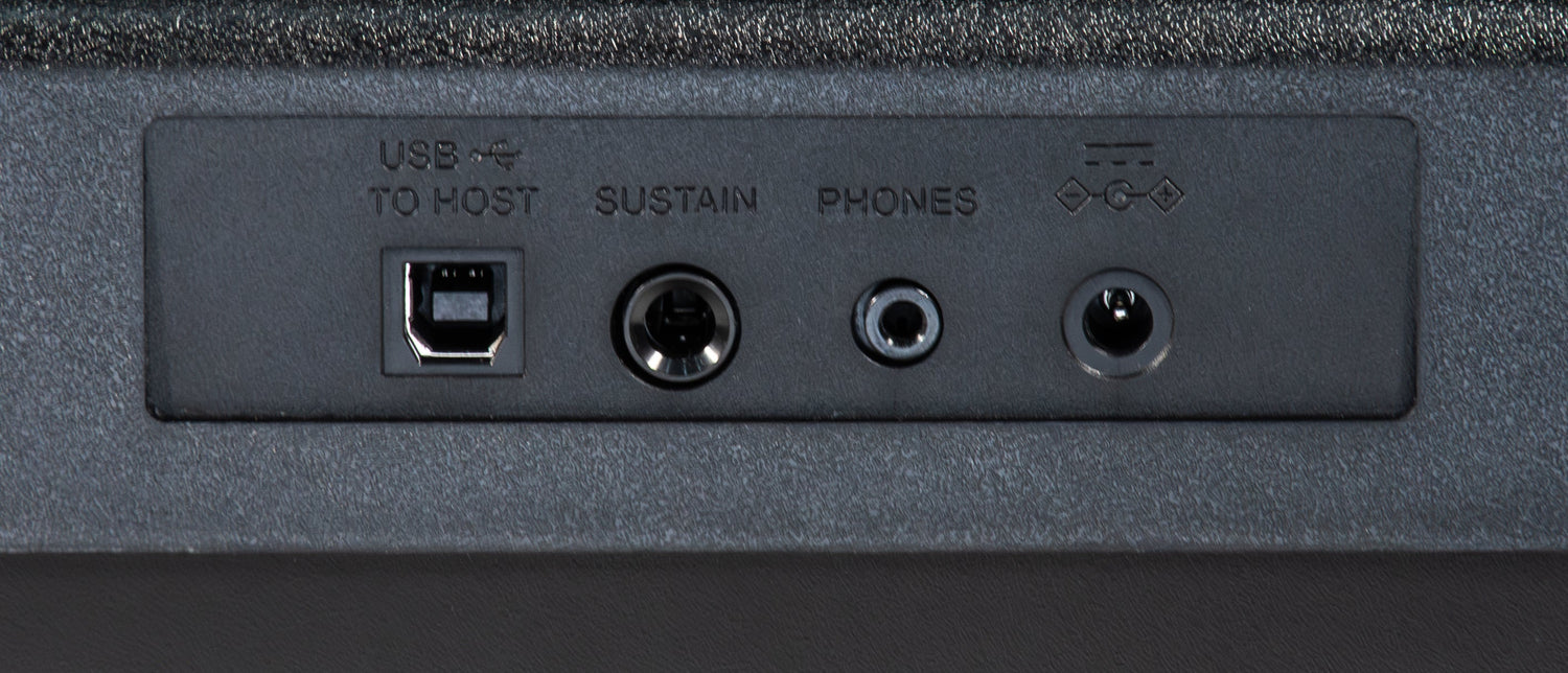 - Anslutningar: USB-B till host, Sustain, Hörlursutgång, Strömingång