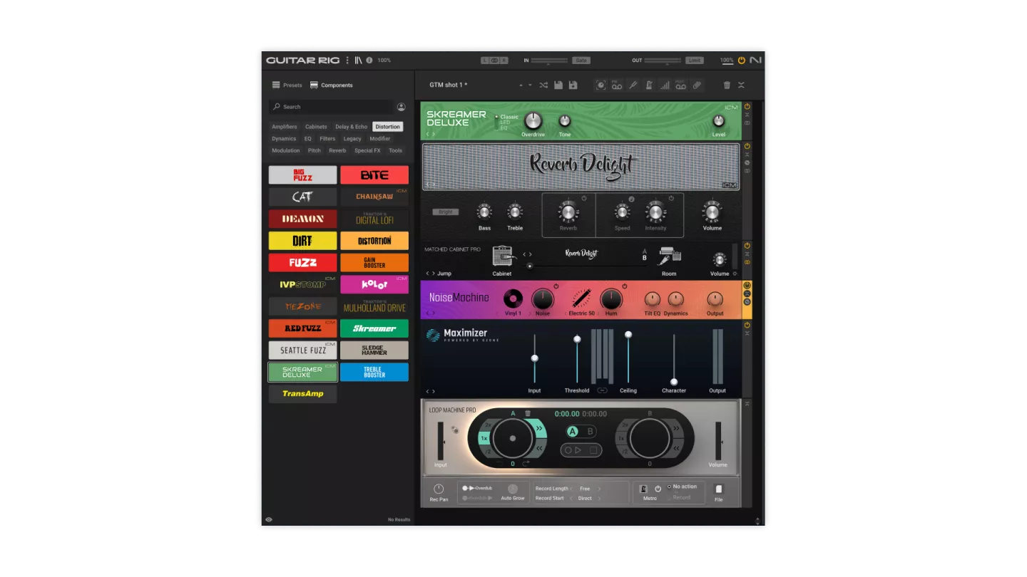 Guitar Rig 7 Pro är en inspirerande svit med eftertraktade gitarr- och basförstärkare, effekter och pedaler. Mixa och matcha moduler för skräddarsydda ljud, utforska över 100 nya presets och dyk ner i nya lo-fi-komponenter.