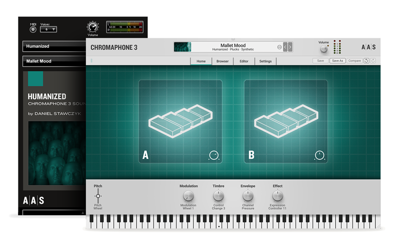 Original text: Efter att ha avslöjat den syntetiska sidan av Chromaphone med Octagon och Digital Sins ljudpaket, önskade den boende ljuddesignern Daniel Stawczyk att utforska den intrinsikalt organiska naturen hos synthesizern. Han är tillbaka med Humanized, en ljudsamling som utnyttjar Chromaphones kraftfulla makro- och lager-system för att morfa korta och percussiva attacker tillsammans med dron-liknande pads. Denna rivalitet mellan kontrasterande lager efterliknar en mänsklig in- och utandning, vilket leder till en subtil kommunikation med lyssnaren.