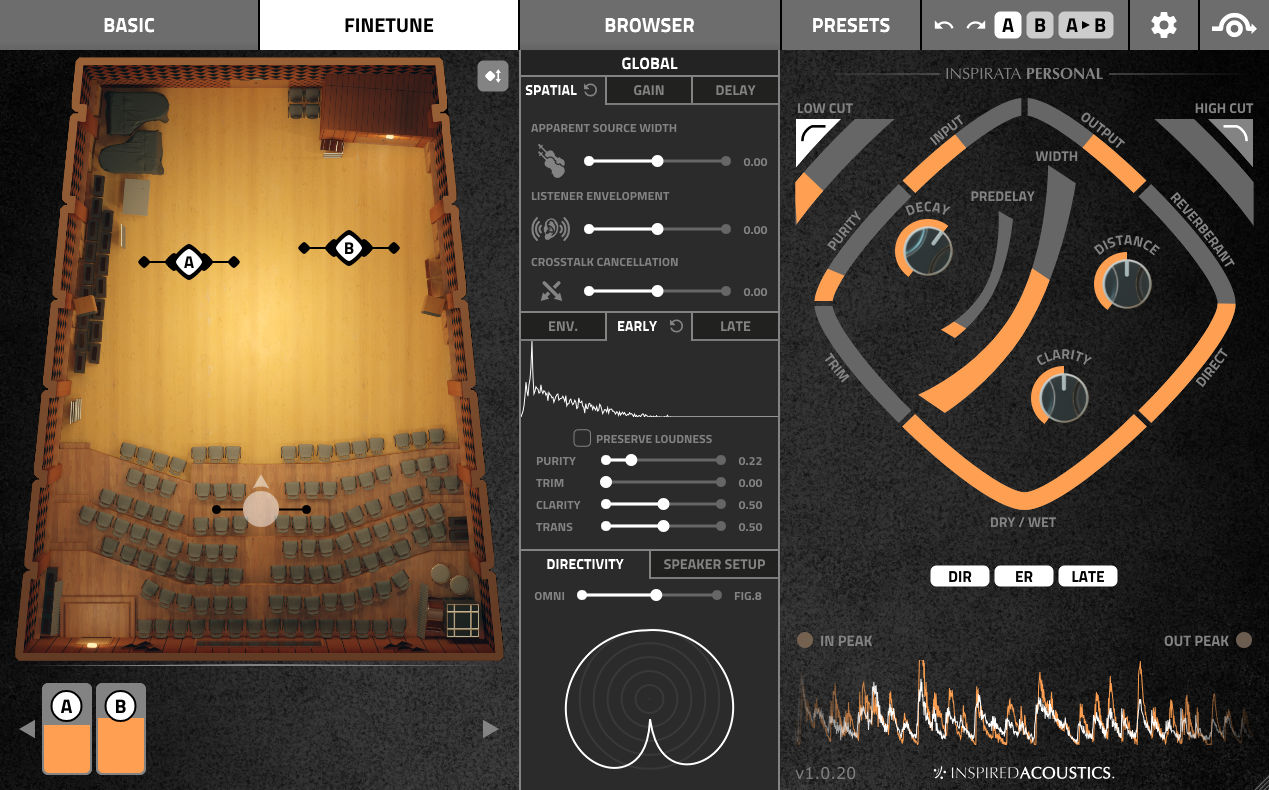 Justera verkliga akustiska parametrar som upplevd ljudkällans bredd (ASW), lyssnarens inneslutning (LEV) eller ljudklarhet (C80).