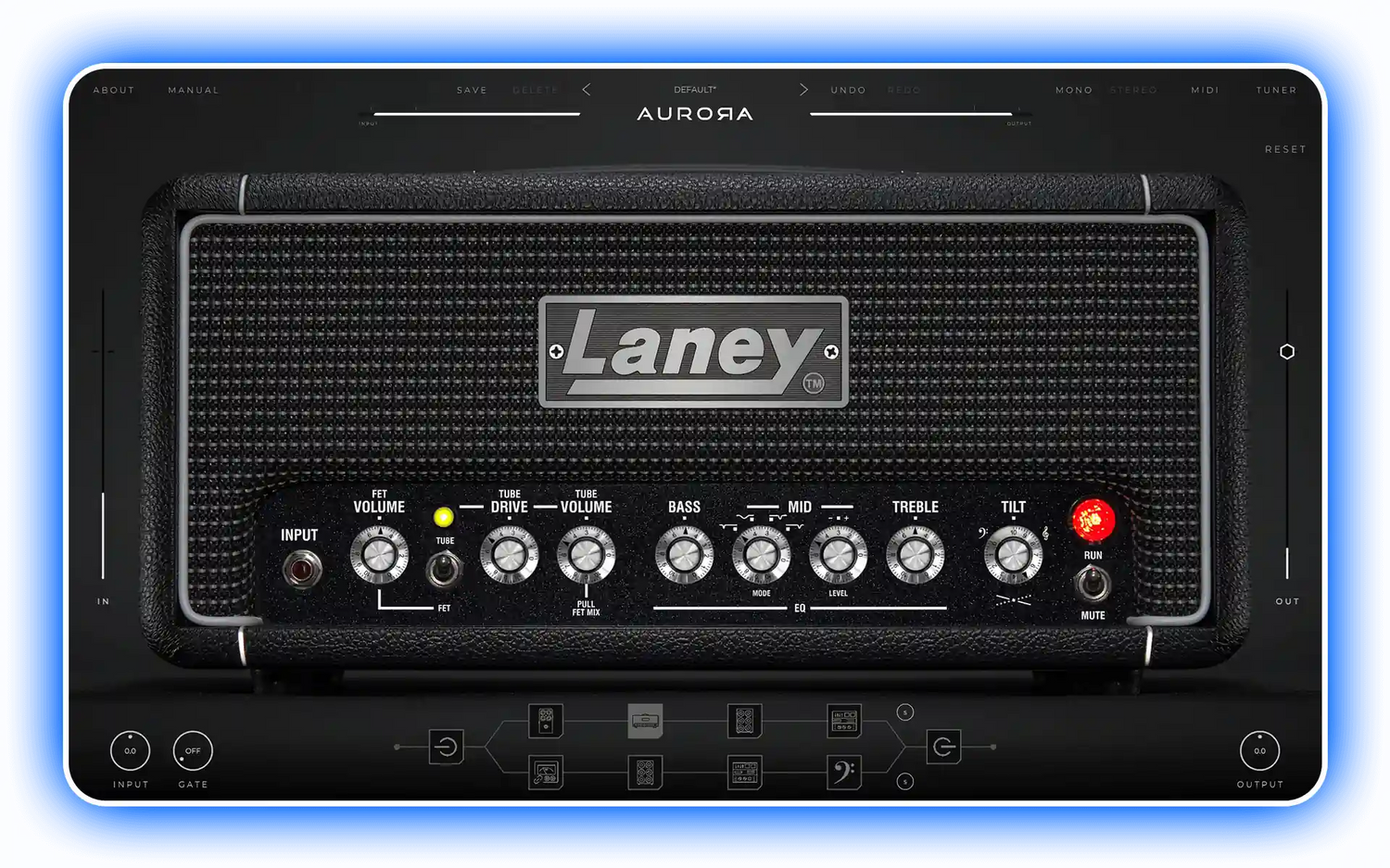 - Cab section with 3 Laney cabs and an array of mic options.