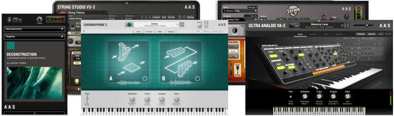 AAS är mycket stolta över att ha samarbetat med Daniel Stawczyk, Christian Laffitte, Cipryan Bot, Thiago Pinheiro, Richard Devine, Sean Divine, Andre Ettema, Gregory Simpson, Simon Stockhausen, Martin Walker, Deadbeat, David Kristian, Adam Pietruszko, Francis Preve, Yves Frulla, David från MixbusTV, Niall McCallum, Emeric Zubar, Amon Tobin och Michel Basque—några av branschens främsta ljuddesigners.